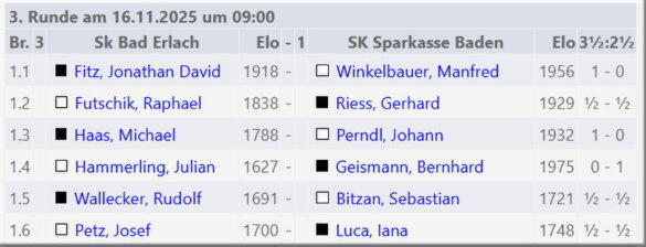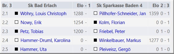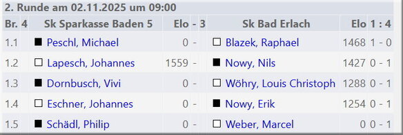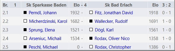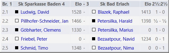 2. Klasse: Baden IV - Bad Erlach III 3,5:2,5