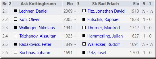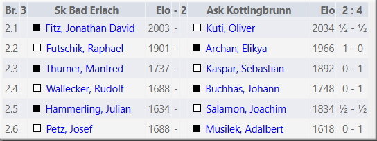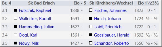 Liga: Bad Erlach I - Kottingbrunn I 0,5:4,5