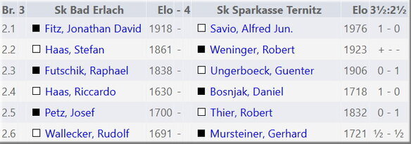 1. Klasse: Bad Erlach II - Ternitz II 2,5:2,5