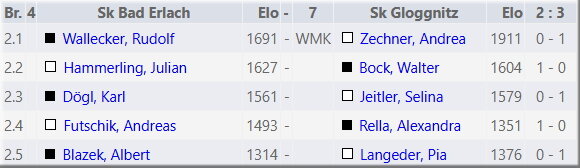 Liga: Bad Erlach I - Gloggnitz I 2,5:3,5