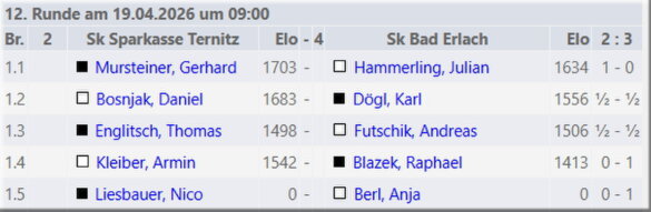 Die Schlussrunde in Kottingbrunn verlief für unsere Mannschaften leider nicht erfolgreich: In der Liga erreichten Ing. Stefan Haas und Ing. Manfred Kraus gegen starke Gegner jeweils ein Remis, in der 2. Klasse siegten Karl Dögl und Christopher Rodax,