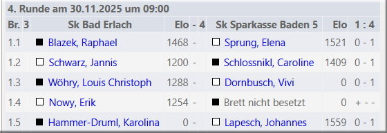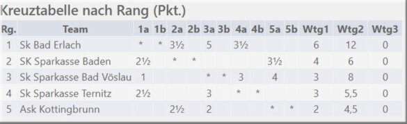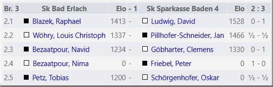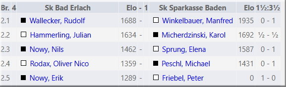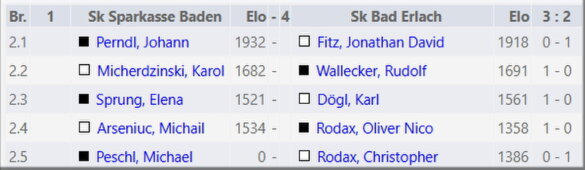2. Klasse: Baden IV - Bad Erlach III 3,5:2,5