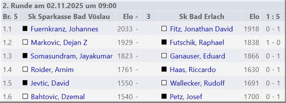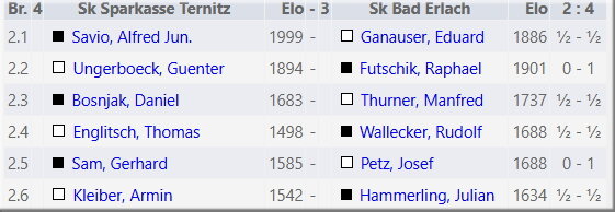 1. Klasse: Bad Erlach II - Ternitz II 2,5:2,5